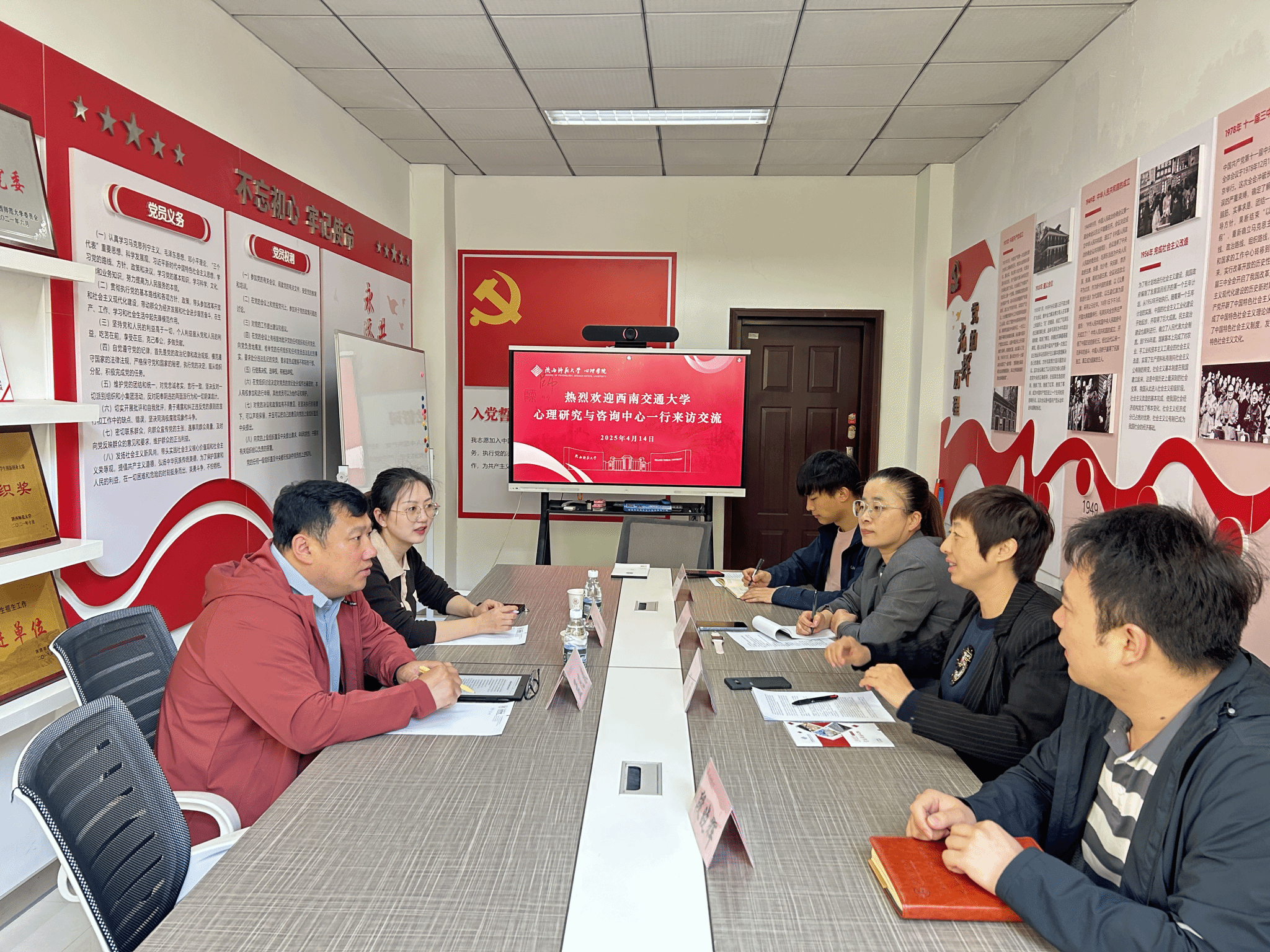 4月14日上午,西南交通大学心理研究与咨询中心党委副书记孟凡春、团委书记樊菊一行来学院就学生职业规划与就业指导、学风建设、特色学生活动及校友工作等内容进行调研,并在雁塔校区教学九楼二层9205会议室召开座谈会。学院党委副书记杨茜、团委书记张媛媛及全体专职辅导员参加座谈会。