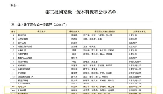 近日,教育部公布了第三批国家级一流本科课程认定结果,学院张丽锦教授主持的教师教育公共课《儿童发展》成功入选国家级线上线下混合式一流课程。